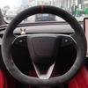 Für Tesla-Modelle Modell X Modell 3 DIY benutzerdefinierte Leder-Wildleder-Lenkradabdeckung Auto-Radabdeckung Innenraum