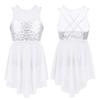 Kinder Mädchen Moderne Lyrische Tanzkostüme Ärmellose Pailletten Überkreuzte Rückseite Ballett Unregelmäßiges Trikotkleid