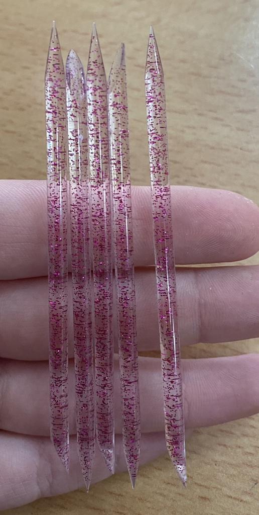 Die Nagelsticks sind sehr schön, mit Glitter, nicht lang, ca. 10cm, sehr spitz an den Enden.