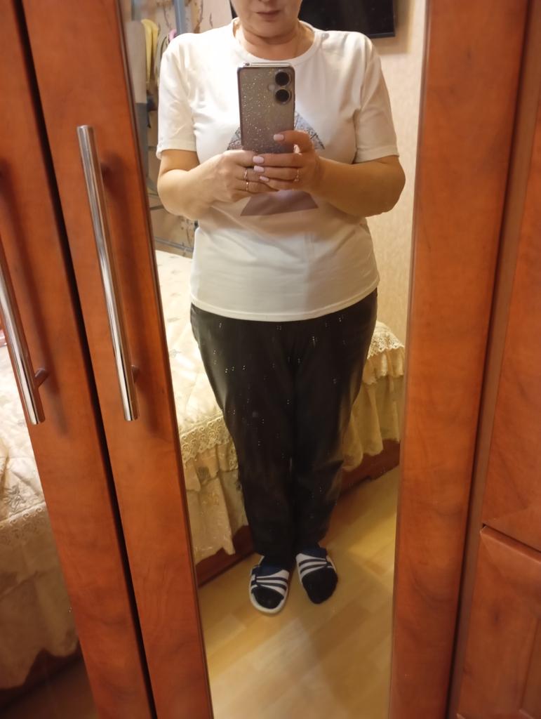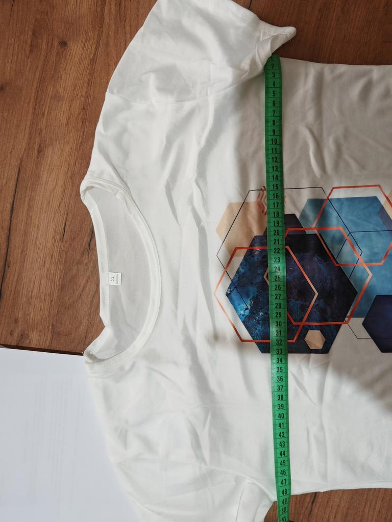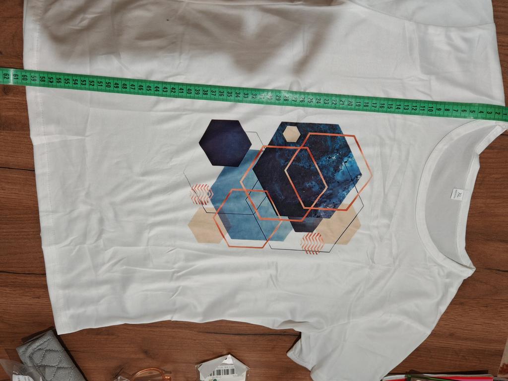 Tolles Sommer-T-Shirt. Leicht, dünn, schneeweiß. Für meine Größe 48-50 habe ich 54 genommen. Fällt klein aus.
