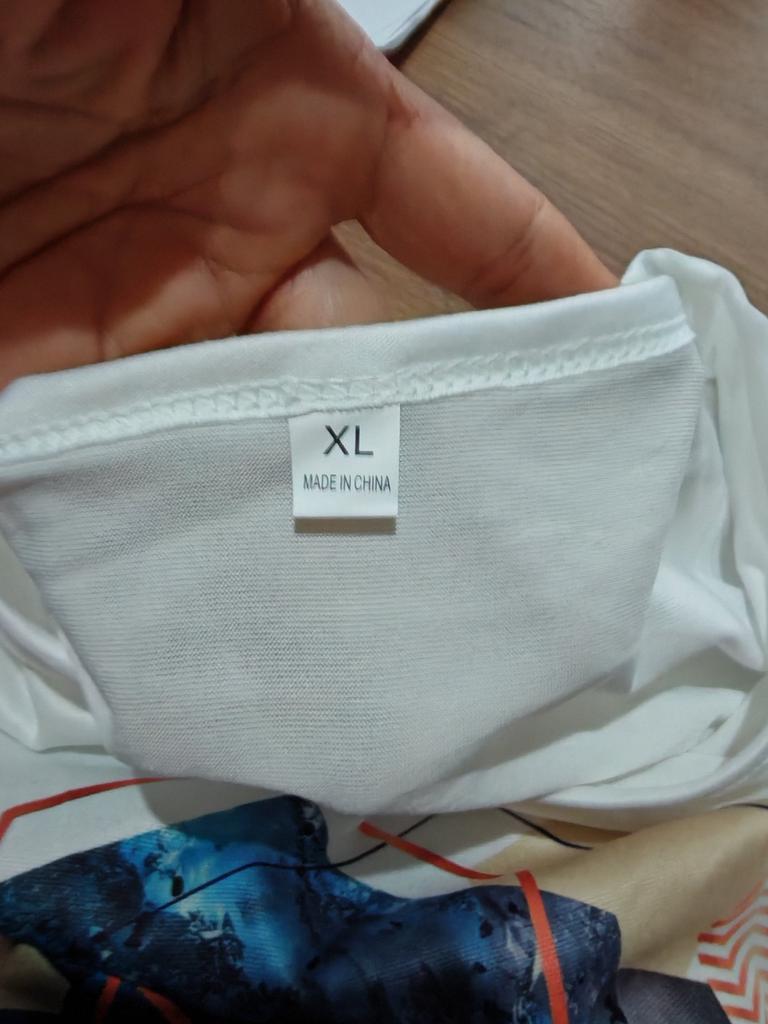 Das T-Shirt ist aus dünnem Synthetikmaterial. Es passt in chinesischer Größe XL, ist aber nicht zu eng. Es ist leicht durchsichtig.