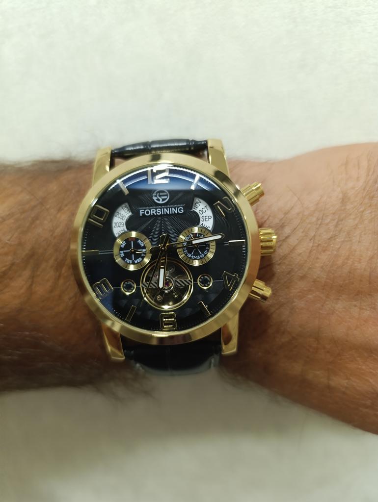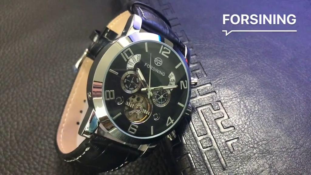 Forsining Modische Herren-Freizeituhr mit großem Zifferblatt und automatischem Tourbillon-Mechanismus