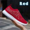 Modische Damen-Schuhe aus leichtem, atmungsaktivem Mesh, elastisch, gestreift, mit Regenbogen-Strasssteinen