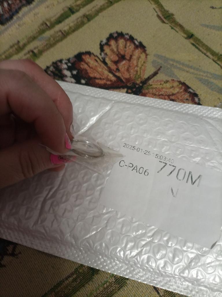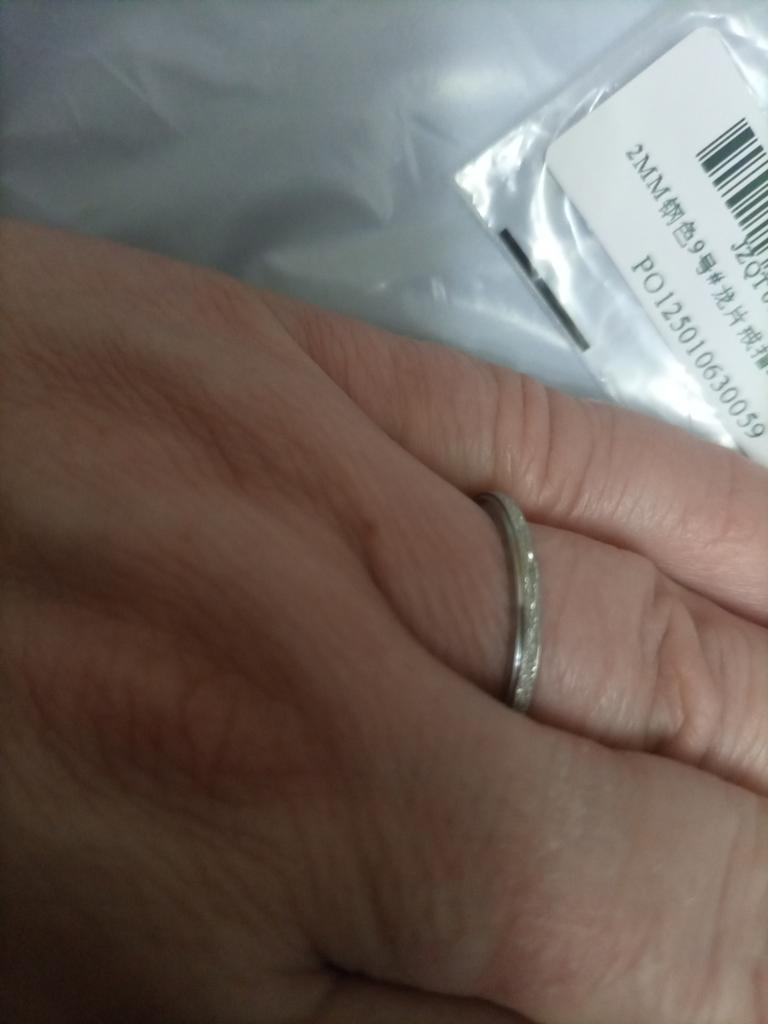 Der Ring ist normal, wie auf dem Foto. Vielleicht ist er für jemanden, der 18,5-19 hat, nützlich. Nun, er kann am Daumen getragen werden.