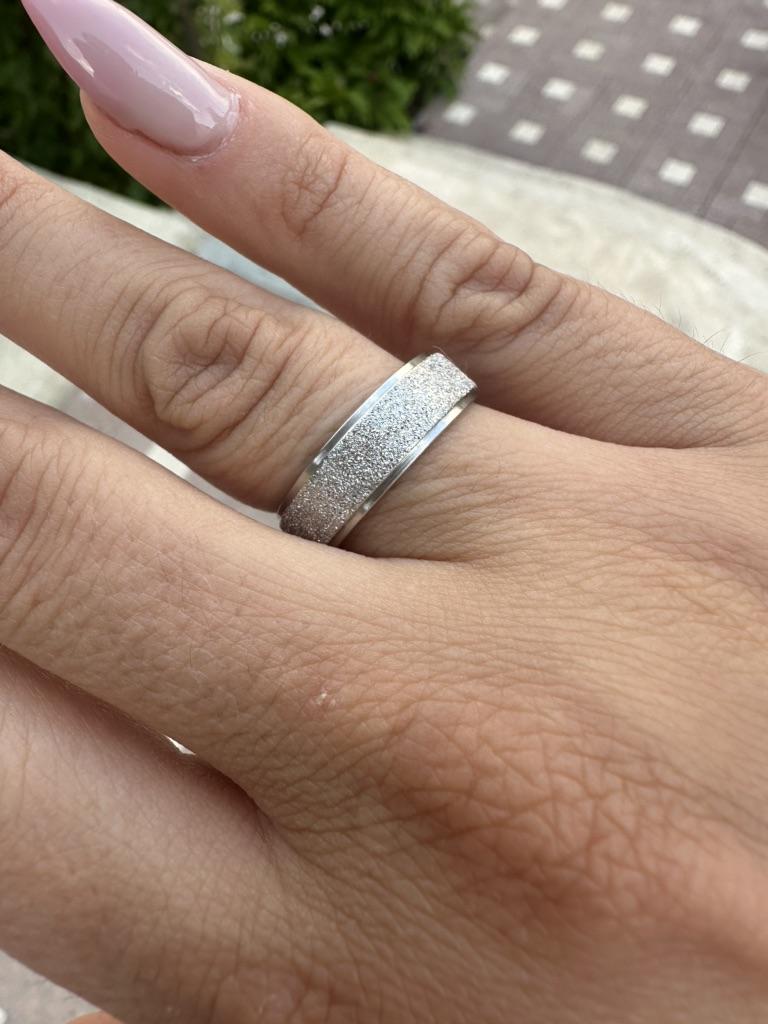 Ein schicker breiter Ring, die Innenseite ist glatt, liegt angenehm am Finger und kratzt nirgends. Leider habe ich mich bei der Größe geirrt...