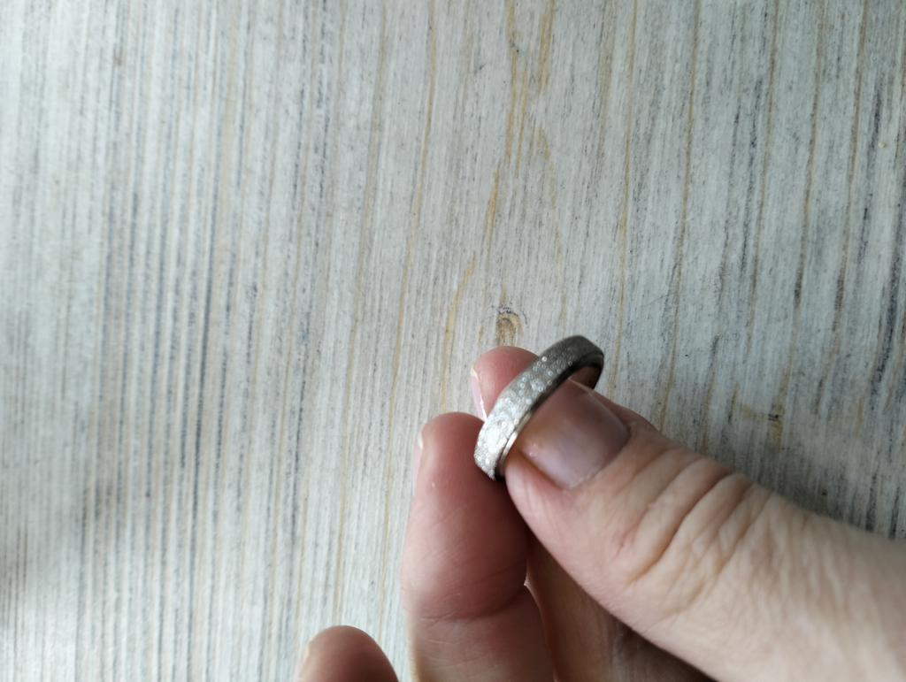 Ein dünner, „rauer“ Ring. Die gefallen mir.