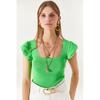 Damen-Strickbluse mit Rüschen und quadratischem Kragen in Ecru-Ärmeln für den Sommer