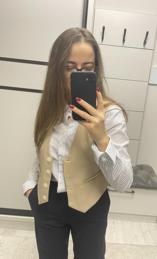 Die Weste ist ausgezeichnet, sie passt gut zu meiner Größe 46 M. Sehr gute Schneiderei, ich empfehle es. Jetzt möchte ich es in einer anderen Farbe.