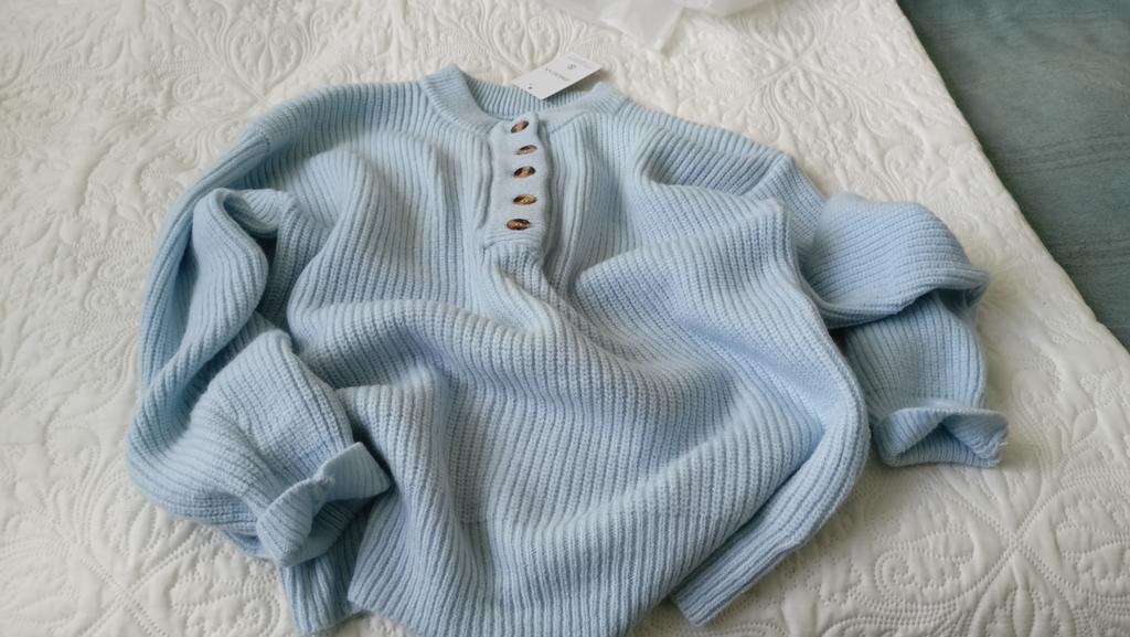 ZIMOXUAN Herbst und Winter neue Rundhals-Pullover Tops einfarbige Knopf-Pullover-Pullover