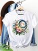 (Asiatische Größe) Damen Print T-Shirt Mondblume Hübsch 90er Trend Top Kleidung Mode T-Shirt Dame Weiblich Lässig Kurzarm Grafik T-Shirt