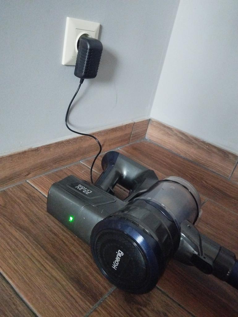 Das Ladegerät für den Staubsauger ist angekommen und lädt schnell.