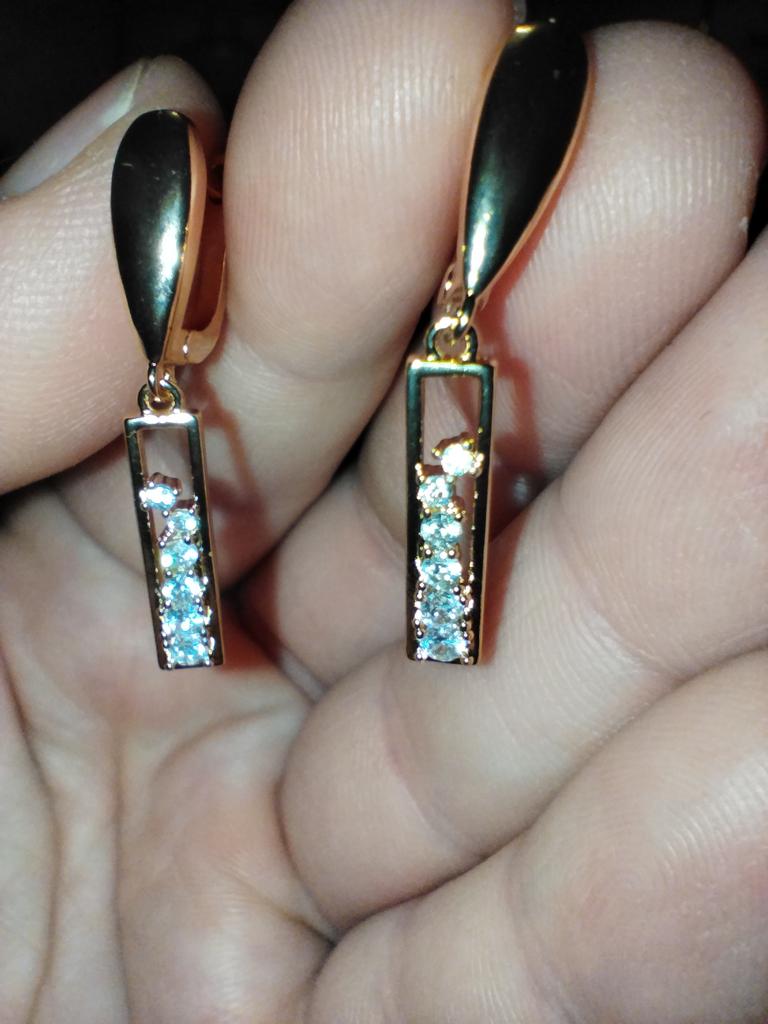 1 paar Goldene Farbe Lange Tropfen Ohrringe Makellos Glatt Cilp Frauen Ohrring Hohl Weiß Zirkon Party Feine Mode Schmuck Creolen