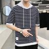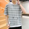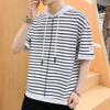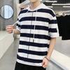 IELGY Halbärmeliges Hemd, gestreift, kurzärmeliges T-Shirt mit Kapuze, lässig, trendig, Kontrastfarbe, lockerer Stoff-Patch für Herren