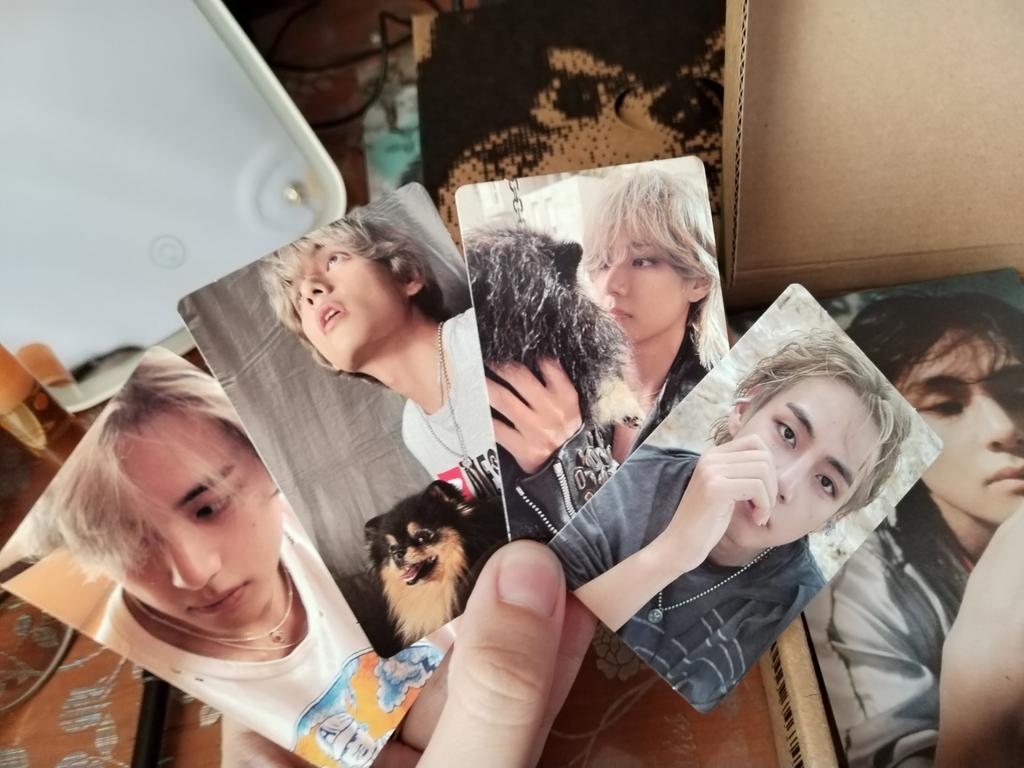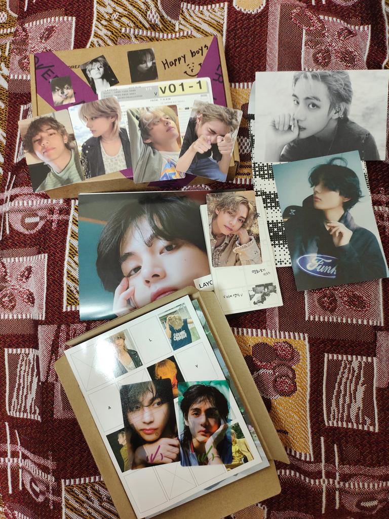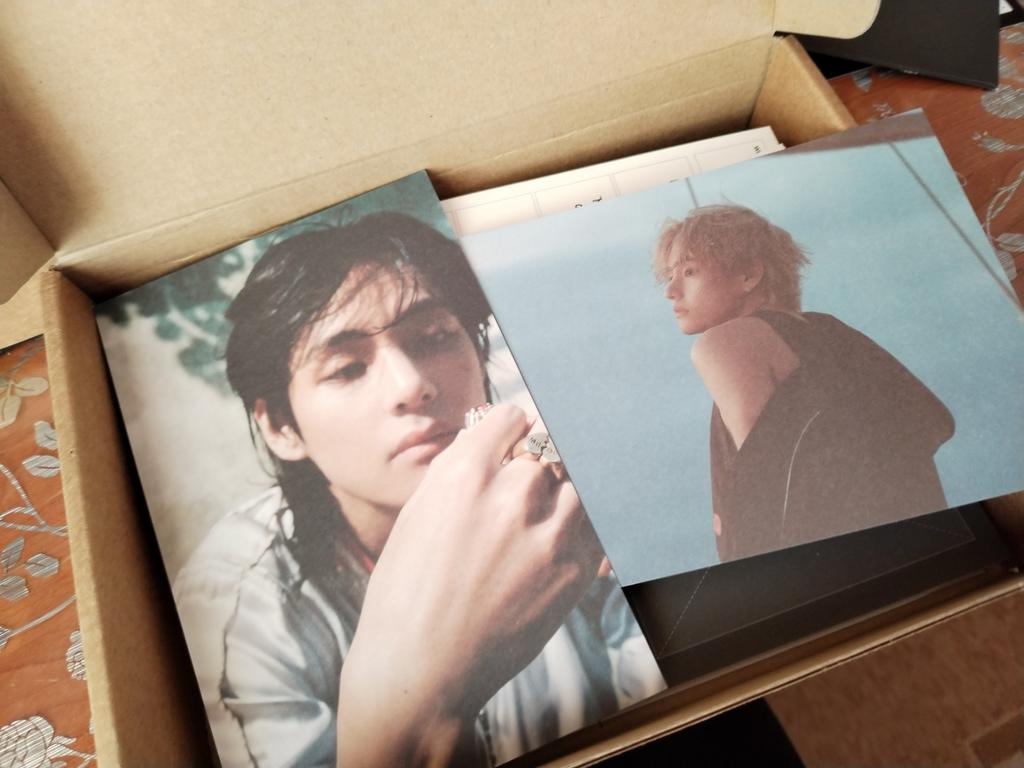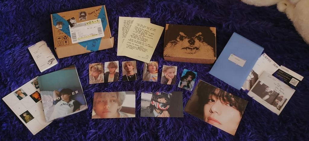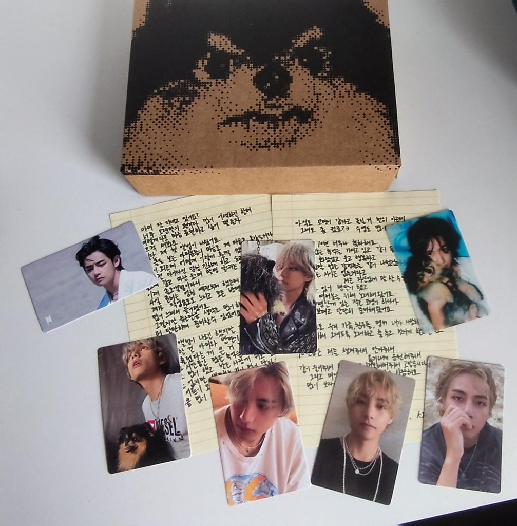 Ich habe zum ersten Mal ein ähnliches Produkt bestellt, ich habe keinen Fehler mit dem Verkäufer gemacht💜 Ich habe nicht mit einer so schnellen Lieferung gerechnet, es kam in 2 Wochen an 🔥 Der Inhalt ist wunderschön, sie haben eine durchscheinende Karte mit Taehyung als Geschenk beigelegt 😌