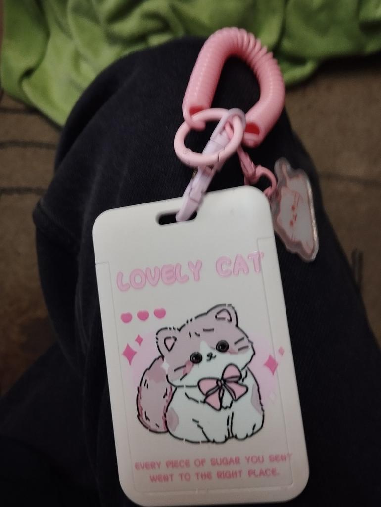 Sehr süßer Kartenhalter. Ausgezeichnete Schlüsselanhänger. Aber die Karte lässt sich sehr schwer einstecken, ich hoffe, sie funktioniert im Geschäft durch die Hülle🤞