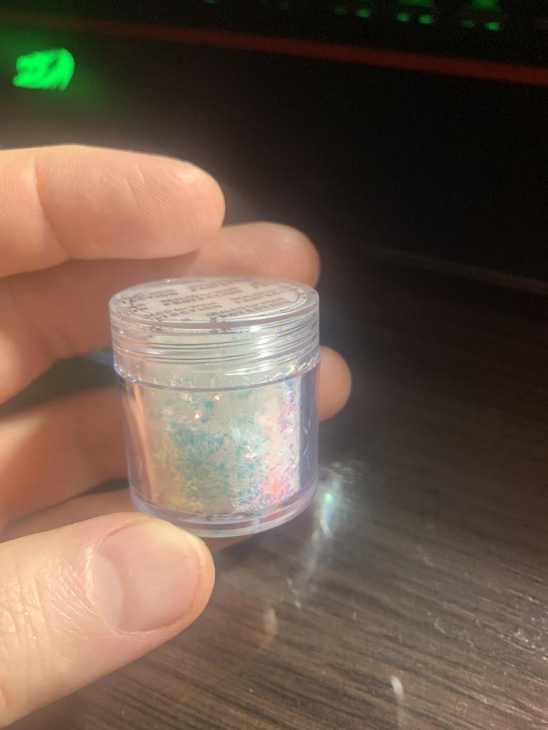 Wie zerbrochenes Glas, aber sehr dünn funkelnd. Klasse!!! Das Glas ist voll.