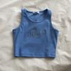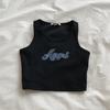 1 Pcs Weste frauen Bestickt Brief Cut Top Atmungsaktive Weste Rippe Einfarbig Straße Kleidung Punk Kleidung Sommer XYZ