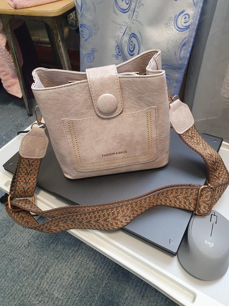 Eine süße Seitentasche, die im Vergleich zu ihrem Aussehen ziemlich viel fasst Sieht aus wie eine Ledertasche und der Riemen ist wunderschön