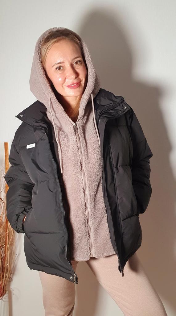 Modischer mittellanger Baumwollmantel mit Kapuze für Damen, verdickt mit Farbblock, neuer Winterstil für Studenten, warme Jacke