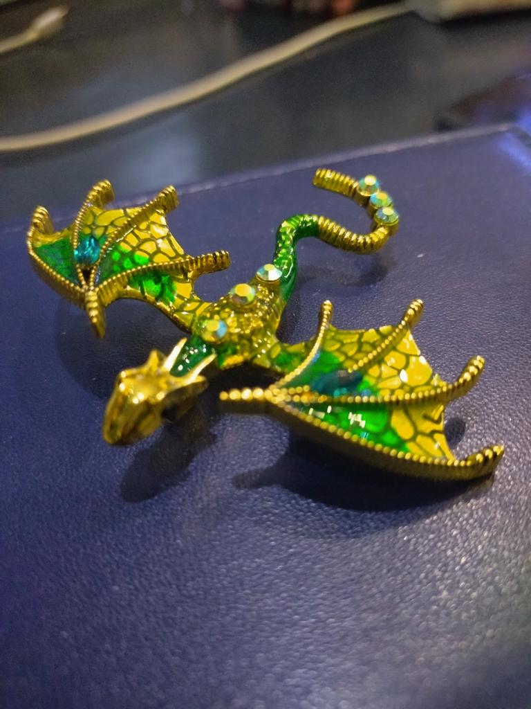 Ein wunderschöner kleiner Drache. Das Metall ist stark und fühlt sich angenehm an. Die Kristalle funkeln wunderschön.