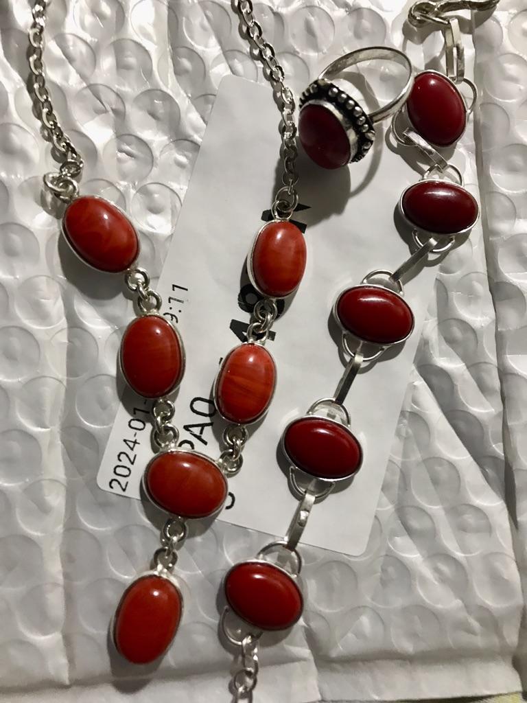 Wunderschöne Halskette. Gute Qualität. Ich habe es gekauft, um ein Set mit Ring und Armband zusammenzustellen. Die Farbe der Steine ist unterschiedlich. Die Steine in der Halskette sind orange