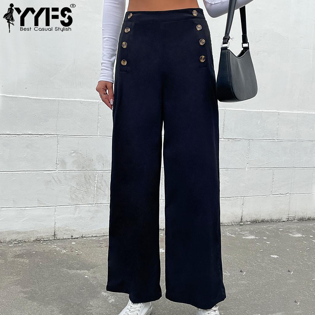 YYFS Damenmode, lässig, einfarbig, mit Knöpfen, Hosen und Caprihosen