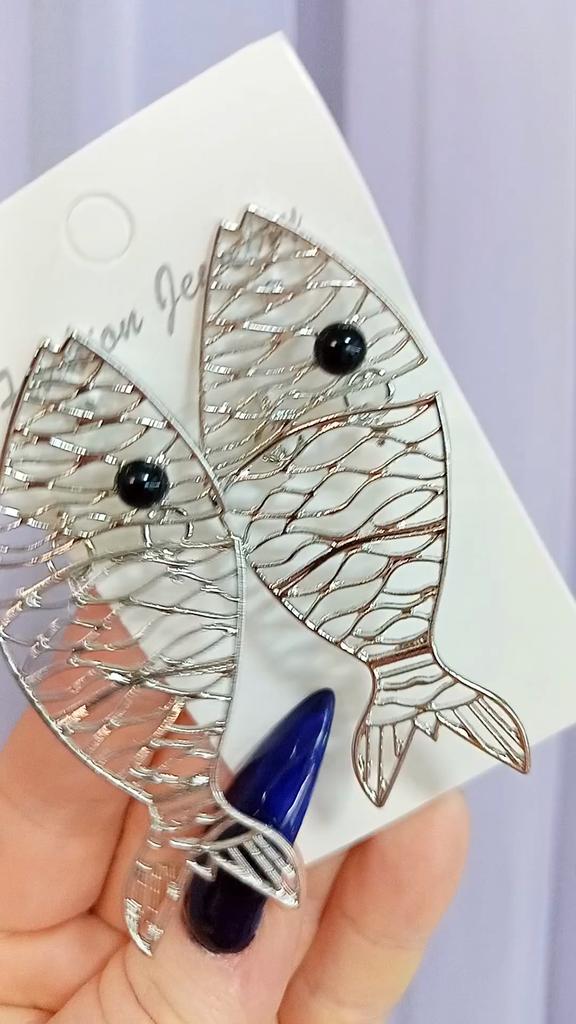 Hohlnähte Fischförmige Ohrringe Za Trend Übertriebene Ohrringe Temperament Kreative Ohrringe