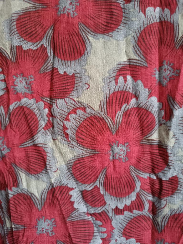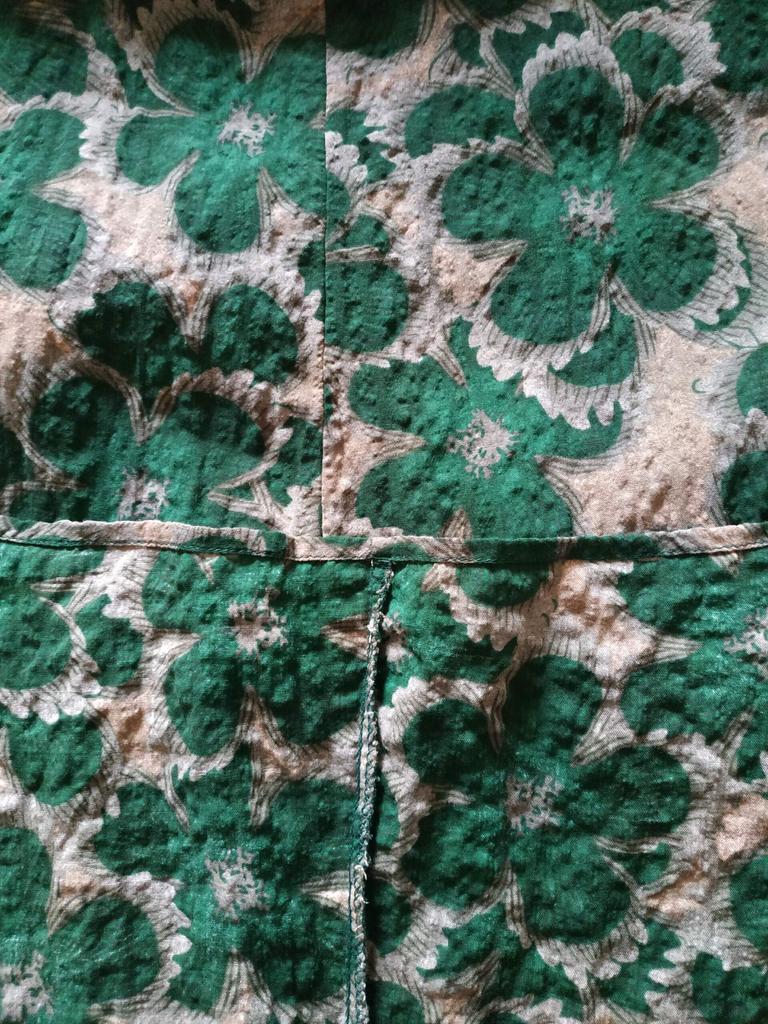 Die Stoffseiten wurden vertauscht, das Kleid wurde auf der linken Stoffseite zugeschnitten und genäht. Das Muster ist verschwommen, der Gesamteindruck ist wie bei verblichenem Stoff. Support kontaktiert