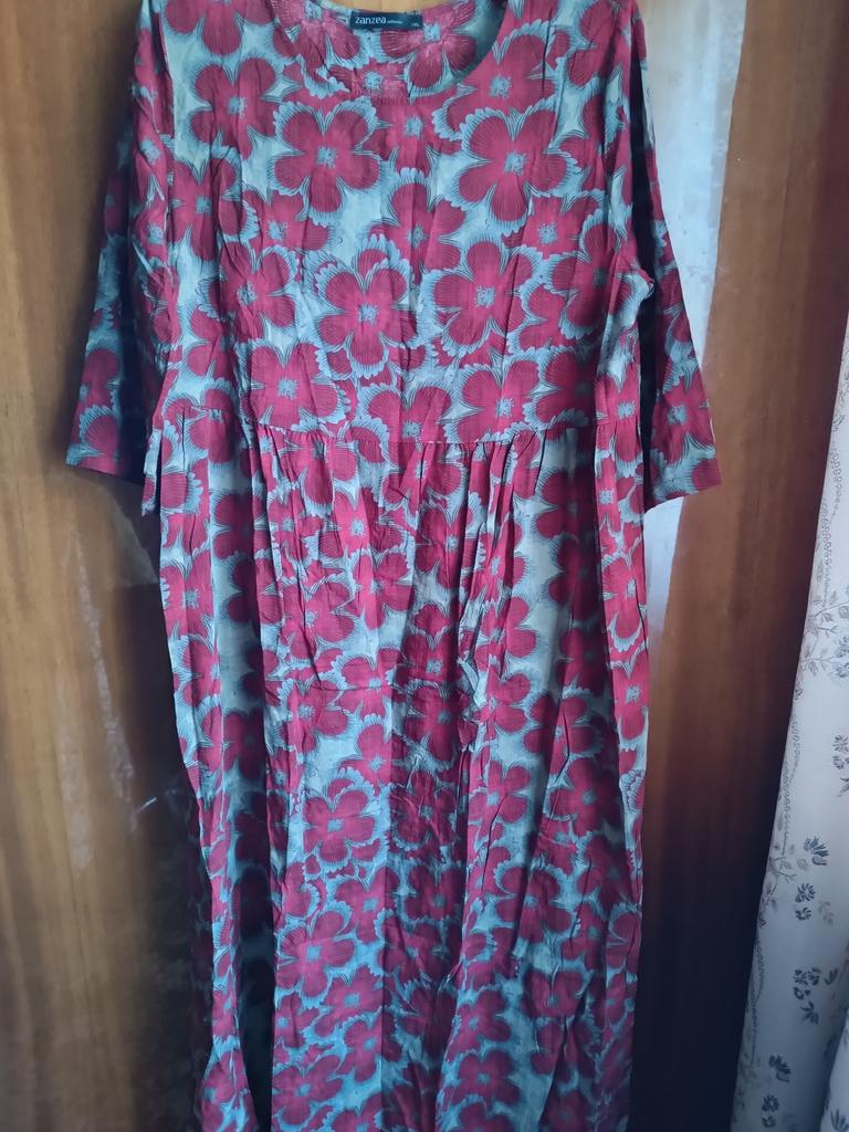 Gutes Kleid. Interessante Farbe. Stoff: Baumwolle. Gut für den Sommer.
