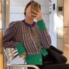 Strickjacke Frauen Herbst Neue Lose Rundhals Tausend Vögel Überprüfen Lange Ärmeln Strickjacke einreiher Pullover Jacke