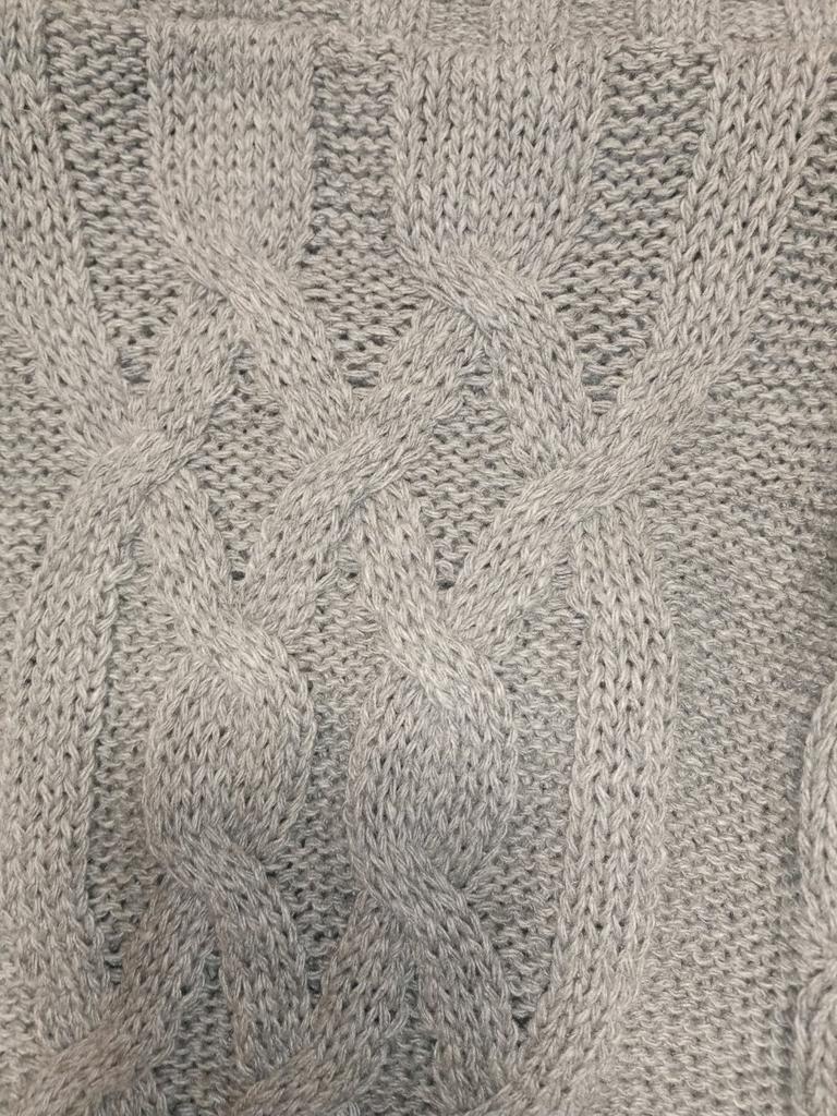 Das Garn ist etwas rau, sieht aber trotzdem gut aus und lässt einen überhaupt nicht dick aussehen, ich empfehle es, die Größentabelle stimmt