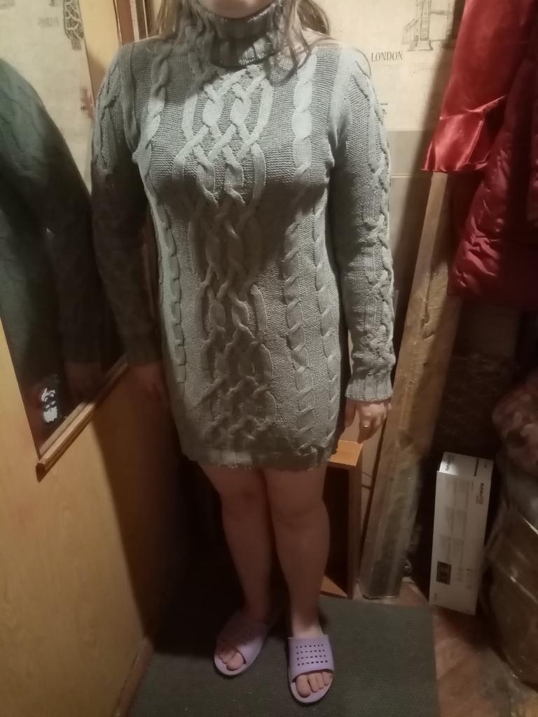 Das ist kein Kleid, sondern ein Pullover. Länge bis Taille. M für unsere Größe 46.