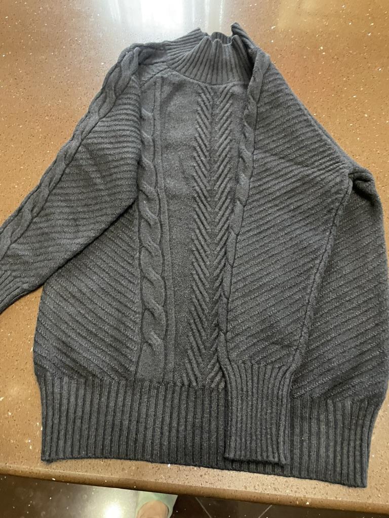 Ein wunderschöner Pullover, weich, zart, sehr dehnbar. So einen habe ich schon einmal getragen, heute habe ich ihn angezogen – er ist sehr warm, genau richtig für den Winter, aber im Herbst ist es heiß.
