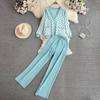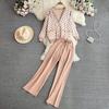 Herbst Vintage Marke Plaid Gestrickte Pullover Hose 2 Stück Set Frauen Trainingsanzug Einreiher Mantel + Knöchel Länge Hosen Outfits
