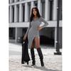 Frauen Frühling Herbst Langarm V-ausschnitt Einfarbig Split Paket Hüfte Kleid