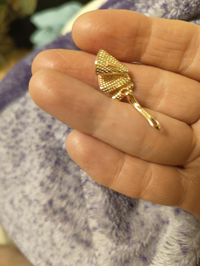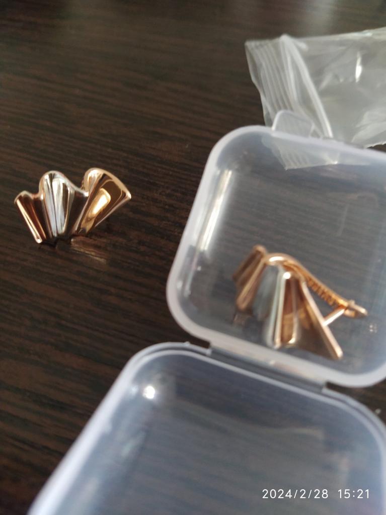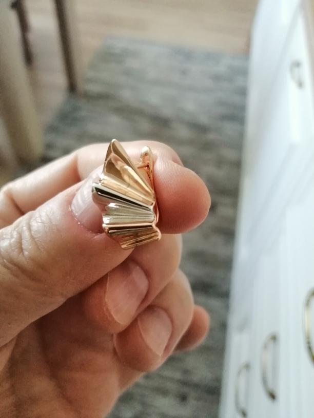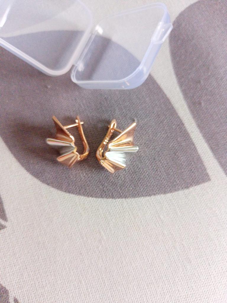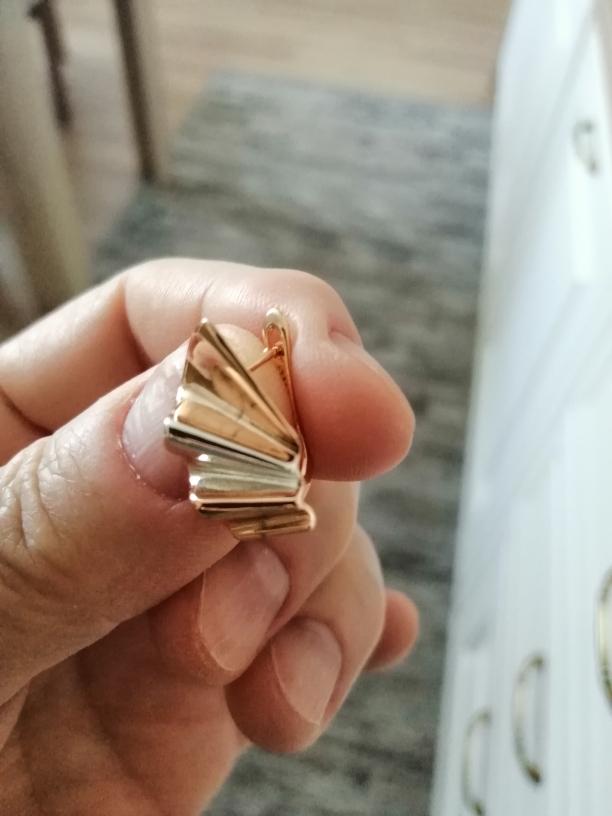 Luxuriöse Ohrringe. Auf dem Foto sehen sie voluminöser aus, tatsächlich 2 cm, die englische Schließe ist um 4 mm abgesenkt, was den Einstich verschließt, der Rand für den Saum beträgt 12 mm, es gibt ein Muster von 585. Ich habe dafür gesorgt, dass der Kinel-Laden qualitativ hochwertige und gut verpackte Waren verkauft. Ich empfehle den Verkäufer und das Produkt.