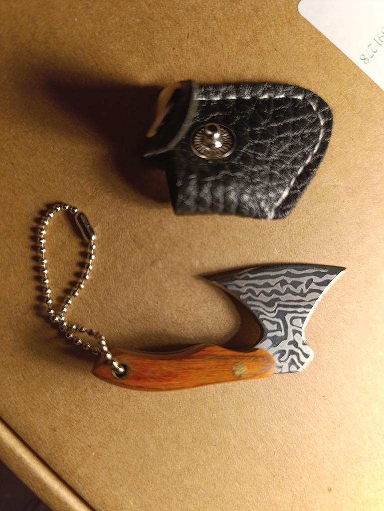 Mini 440 Edelstahl Axt Beil Taschenmesser Full Tang Holzgriff Geschenk mit Scheide Schlüsselanhänger