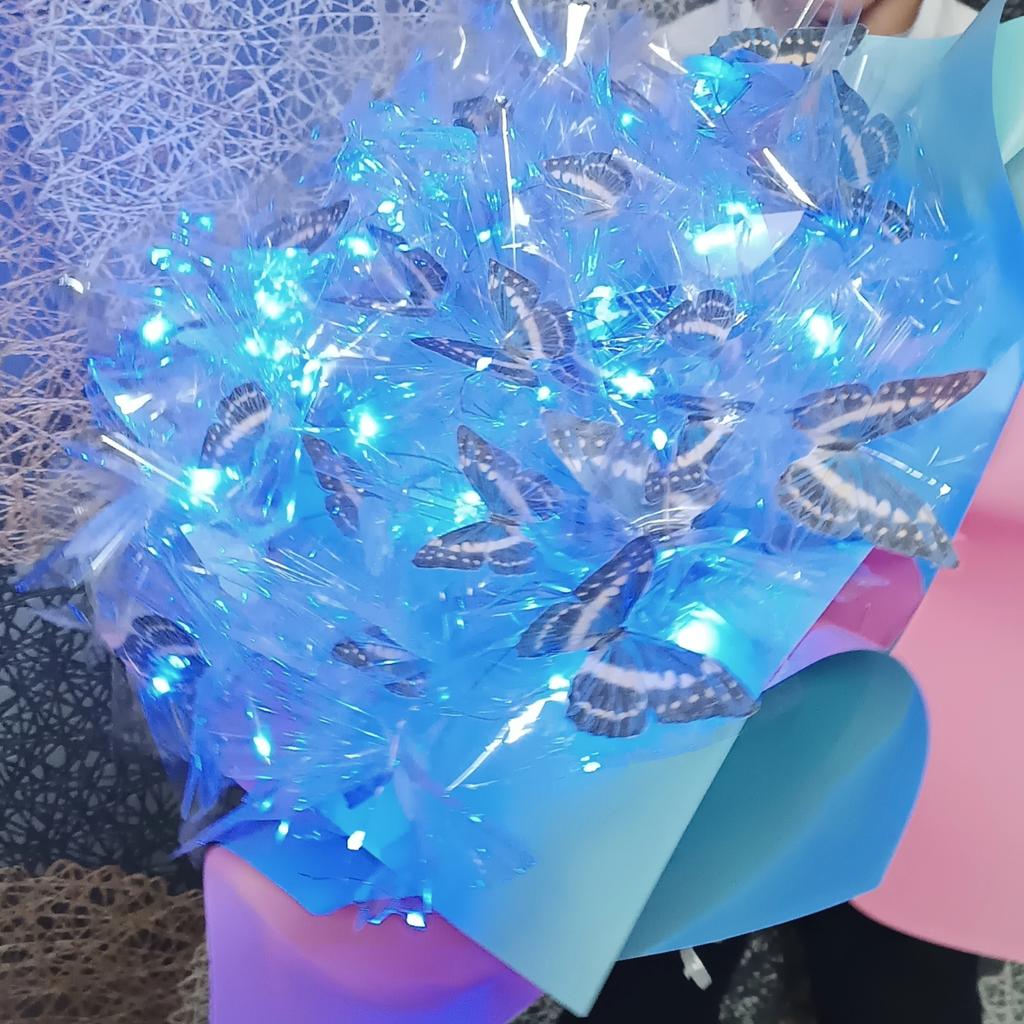 Die Lichterkette leuchtet ausreichend hell, ich nehme sie für Schmetterlingssträuße.
