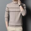 Neuer Wollpullover für Herren aus reiner Wolle, langärmelig, halbhoher Kragen, gestreifter Pullover mit Bodenbildung, Pullover mit Kammgarnmuster, Flut
