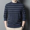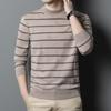 Herrenmode Lässiger Schafpullover Frühling und Herbst Neuer Wollpullover Herren Gestreift Halboher Kragen Gestricktes Unterhemd