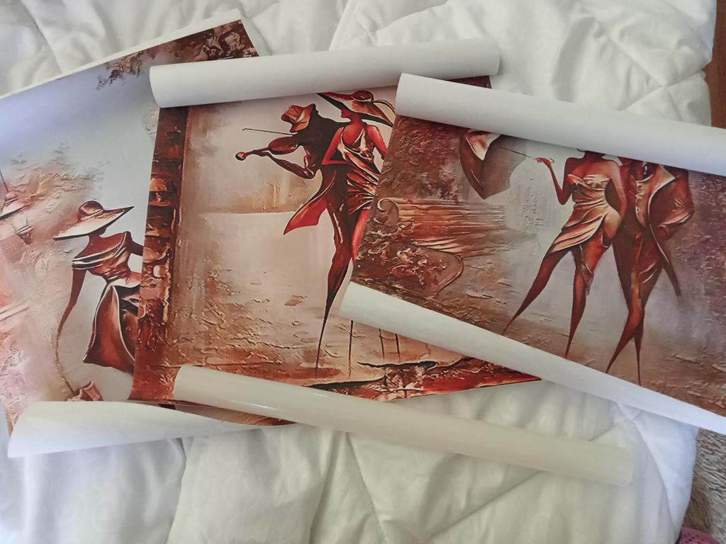 Niedliche stilvolle Bilder auf Rolle. Es bleibt nur noch, sie zu rahmen und damit das Interieur zu schmücken!