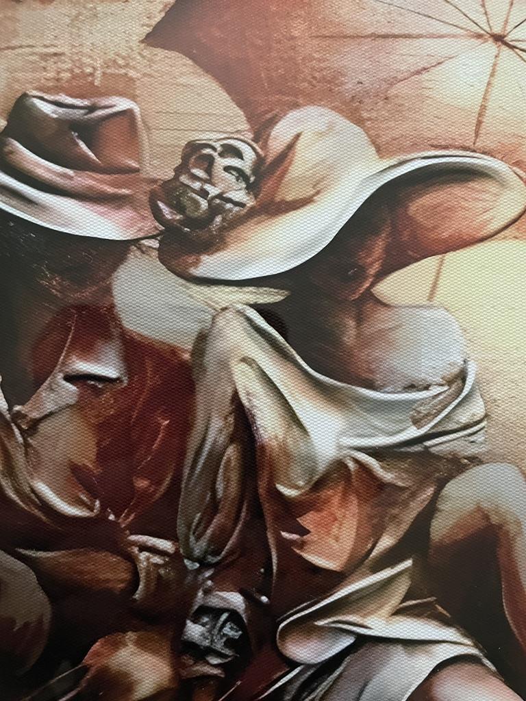 Im Prinzip sieht es nicht schlecht aus. Aber die Qualität des Bildes selbst lässt zu wünschen übrig. Die Gesichter sind nicht detailliert gezeichnet, man sollte die Bilder besser so aufhängen, dass man sie aus der Ferne betrachtet.