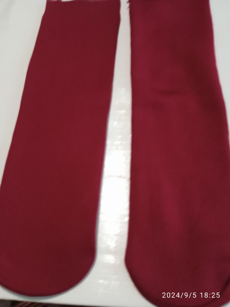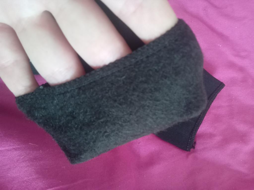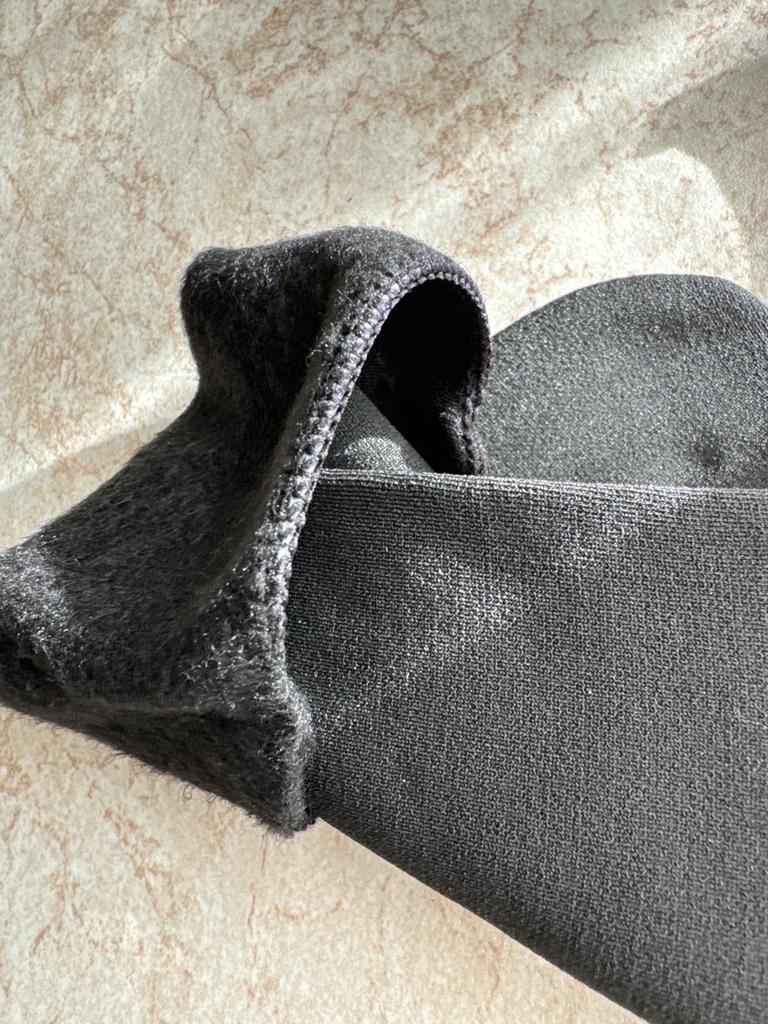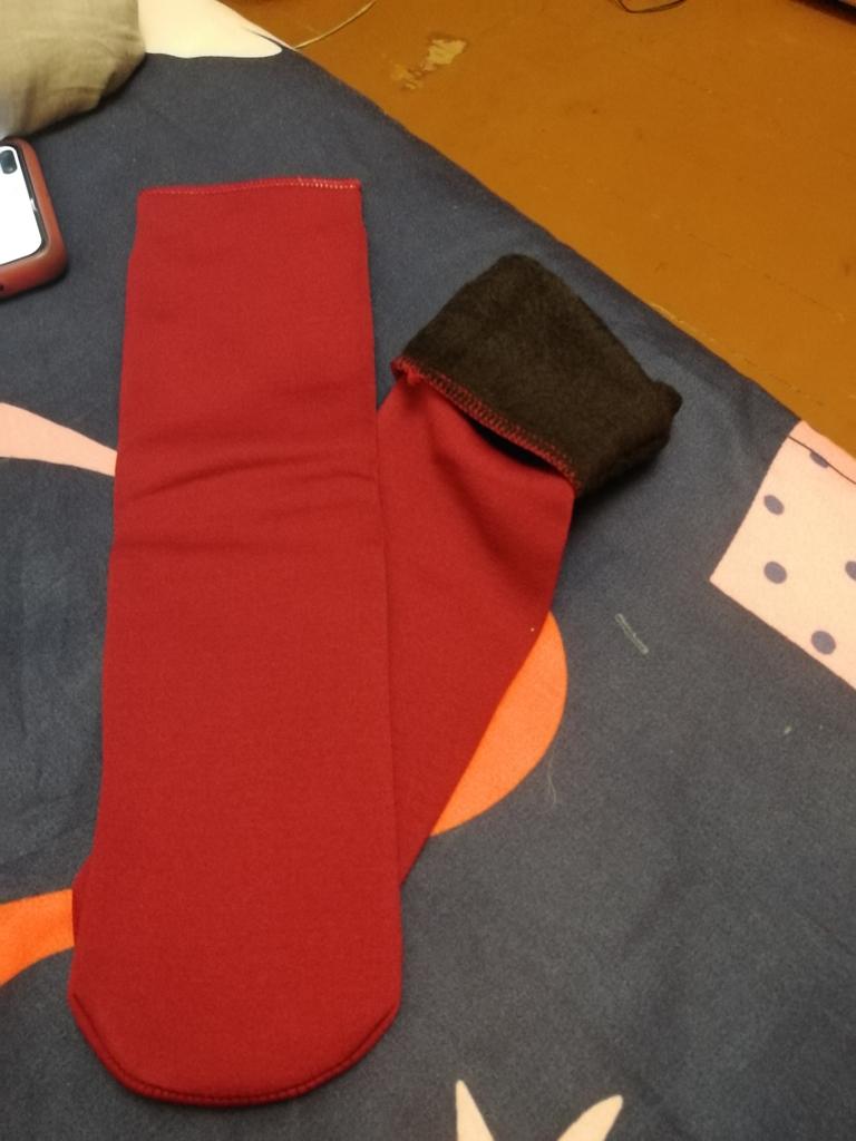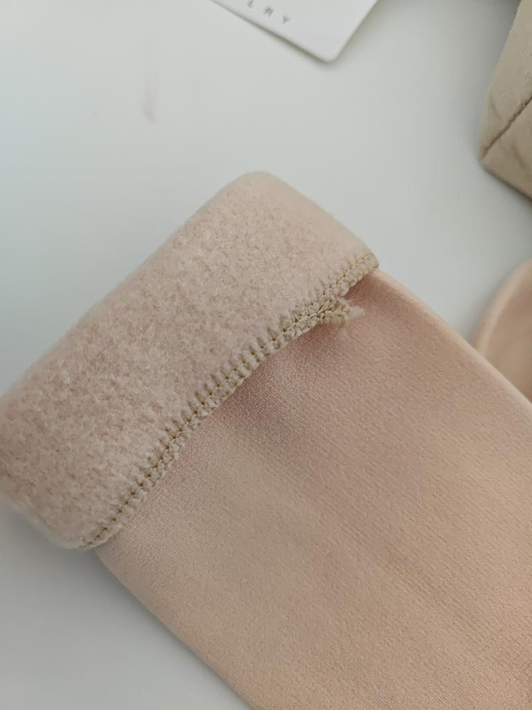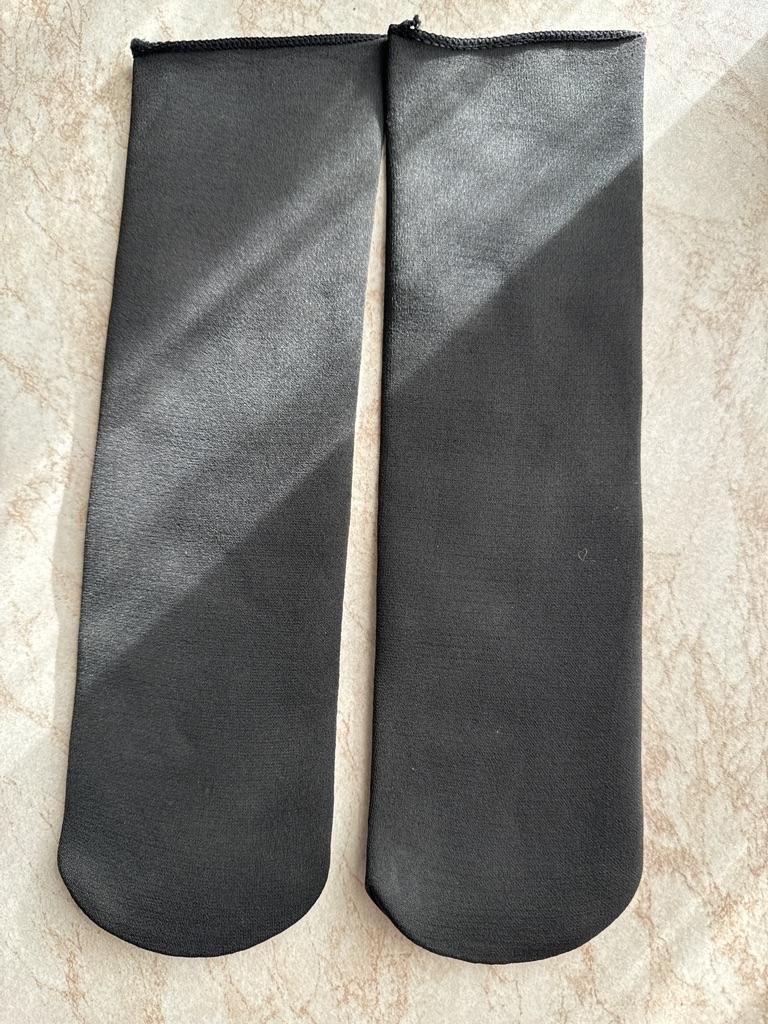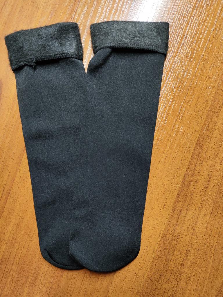 Die Socken sind hochwertig, warm, ohne hervorgehobene Ferse, wie bei gewöhnlichen Socken. Oben der Stoff, wie bei 100-den-Strumpfhosen, innen mitteldickes Fleece. Es gibt keine Verdickung mit einem Gummiband, wie bei üblichen Socken, damit sie am Bein bleiben und nicht verrutschen, sondern um den Kreis ist ein Silikonband gestopft, das sich dehnt. Ich hoffe, dass er es lange durchhält und es sich nicht entgehen lässt.