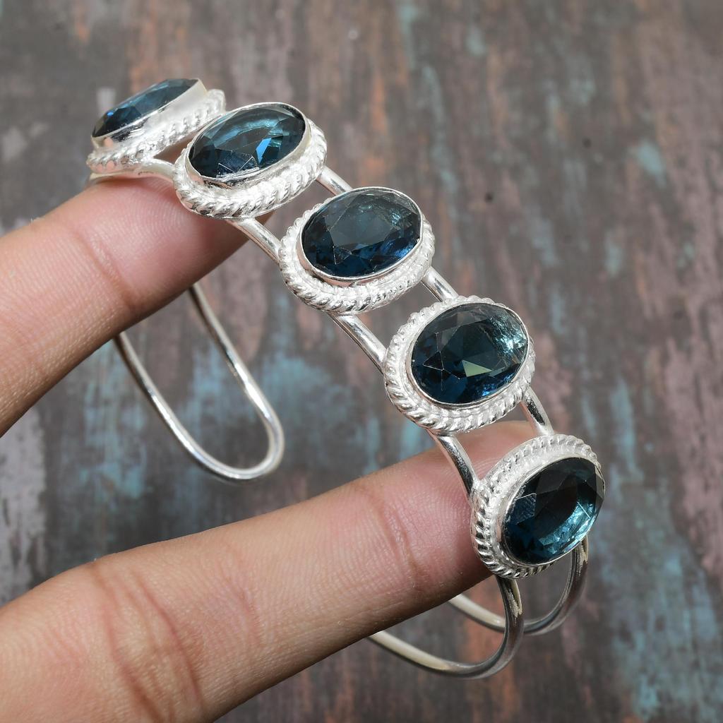 Iolith-Quarz-Edelstein, handgefertigt, massiver 925er-Sterlingsilber-Armreif, verstellbar