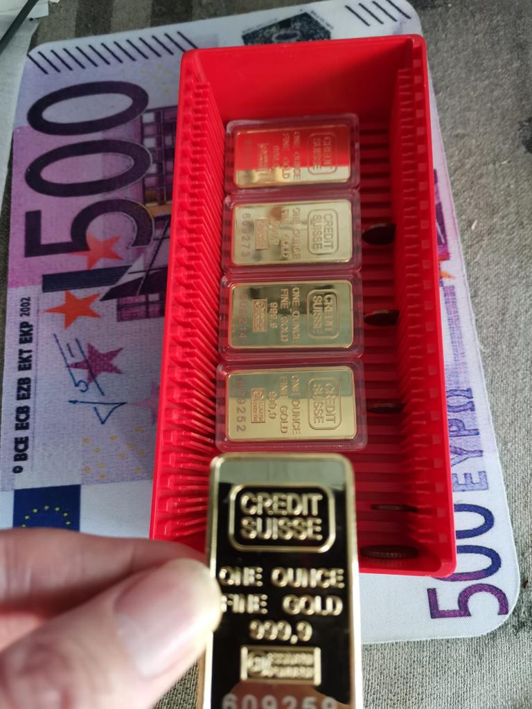 sehr gute Qualität der Imitationen von sehr feinen und glänzenden Goldbarren....sie sehen eins zu eins wie der echte Barren aus ...aber wir werden sehen, wie sie sich mit der Zeit halten ...sie sagen, es sei vergoldetes Messing...also sollte es keine Probleme geben ...besonders da sie in Plastikschachteln aufbewahrt werden, die sich aber öffnen lassen.... und sie wiegen sogar eine Unze...sind aber größer als der authentische Goldbarren, da die Dichte sehr unterschiedlich ist und der Ring ist in Ordnung Ich arbeite in einem Juweliergeschäft und sie wurden für die Schaufensterdekoration gekauft...sie sehen toll aus...ich hoffe, niemand versucht, sie zu stehlen...sie werden eine große Überraschung erleben. sehr gute Qualität der Imitat-Goldbarren sehr fein und glänzend....es sieht genau aus wie der echte Barren...aber mal sehen, wie es sich im Laufe der Zeit hält...sie sagen, es sei vergoldetes Messing...also sollte es keine Probleme geben...besonders da sie in einigen Plastikboxen enthalten sind, die aber geöffnet werden können....und sie wiegen eine Unze...aber sie sind größer als der echte Goldbarren, weil die Dichte sehr unterschiedlich ist und der Ring ist in Ordnung