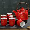 Chinesisches traditionelles Hochzeit-Keramik-Teeset Doppelte Anti-Heiß-Teetasse Doppelte Glücksteekanne Haushaltstrinkutensilien NLSLASI