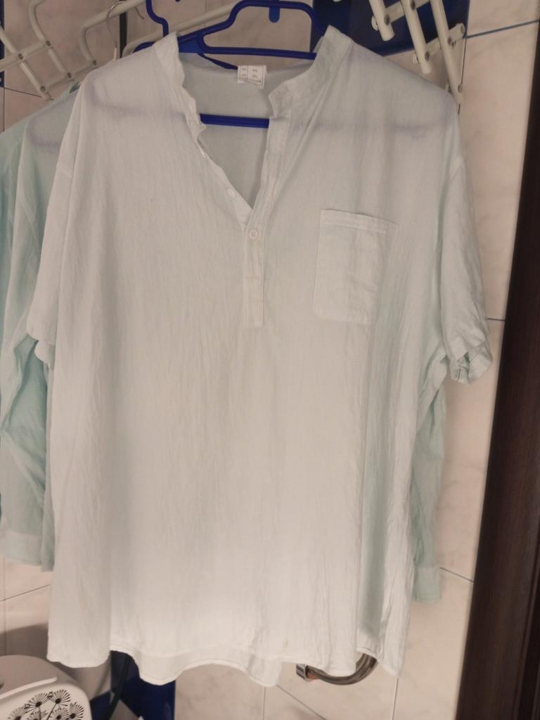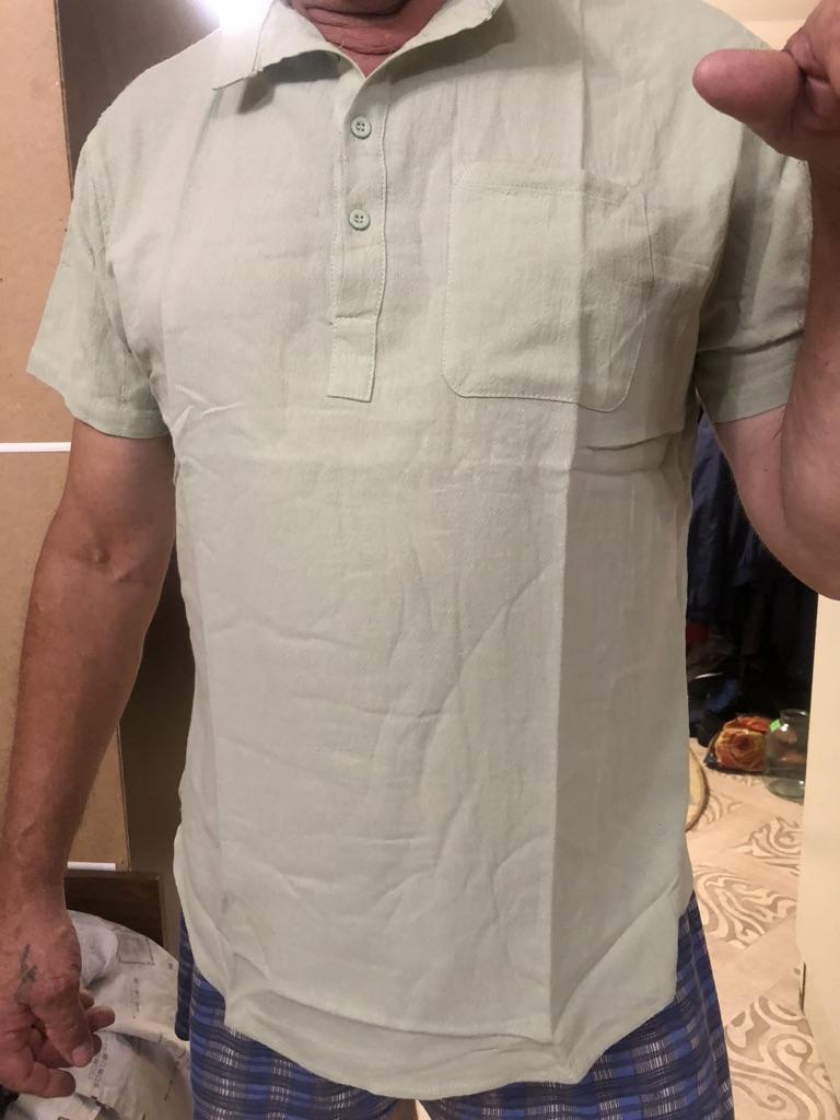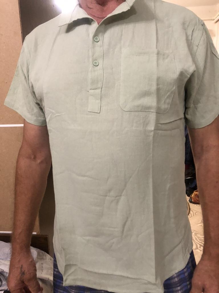 Sehr schönes Hemd. Material ähnelt Leinen. Sieht toll aus. Mintfarben.