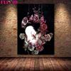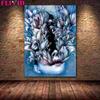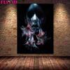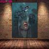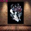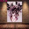 Unheimlich dichter Schmetterling und Mädchen, abstrakte Kunst, geheimnisvolle dunkle Leinwand mit Schmetterlingen und Blumen