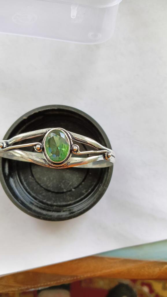 Tsavorit-Edelstein, handgefertigt, massiver 925er-Sterlingsilber-Armreif, verstellbar