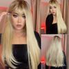 EASIHAIR Blonde Ombre synthetische Naturhaar-Perücken, lang, gerade, mit Pony, tägliche Cosplay-Perücke, hitzebeständige Faser-Perücken für Frauen